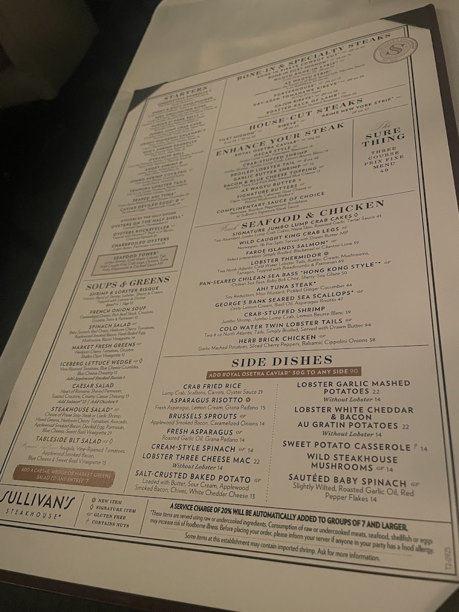 Sullivan’s menu aligns with a dining experience that feels both polished and comfortable, inviting guests to linger over courses while appreciating attentive service and an elegant setting. Whether you’re marking a special occasion or enjoying a casual night out, the food and drinks here provide a steady, enjoyable rhythm to your time at the restaurant.