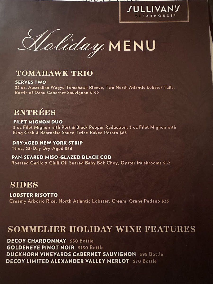 The menu at Sullivan's Steakhouse offers a refined selection of classic American steakhouse fare, designed to complement its upscale and inviting atmosphere. Guests can expect a thoughtful balance of hearty main courses, satisfying appetizers, and carefully crafted cocktails that suit a range of dining occasions—from relaxed evenings out to special celebrations.